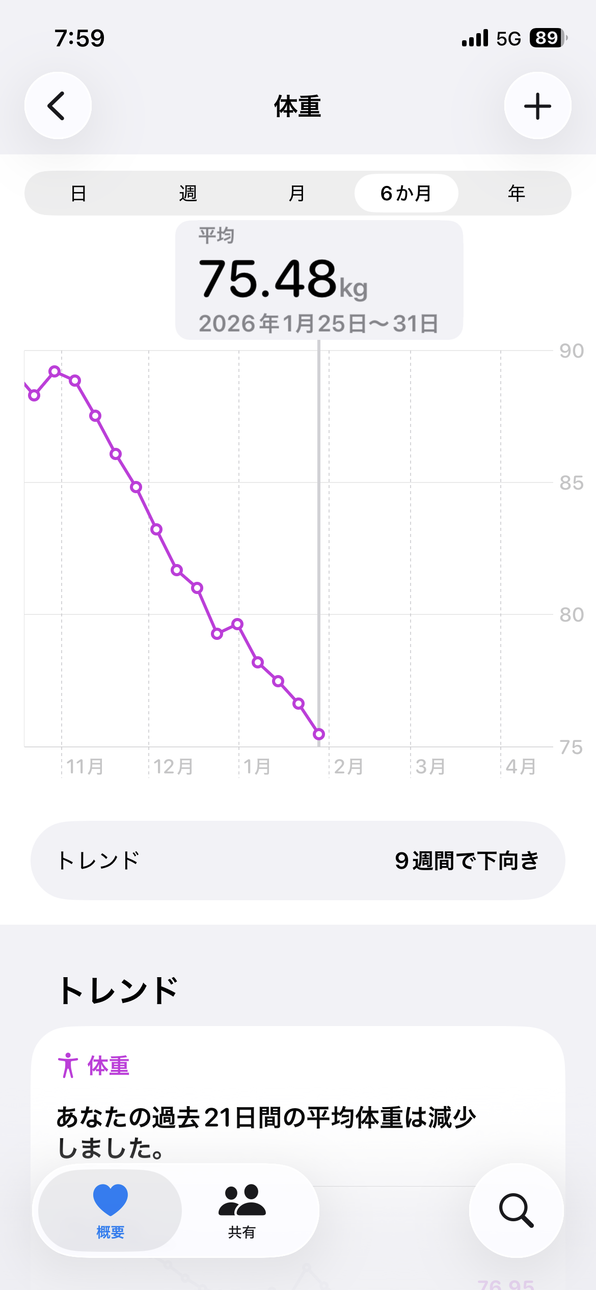 開始時2025/11/4 89.7kg → 3ヶ月後2026/1/30 74.7kg