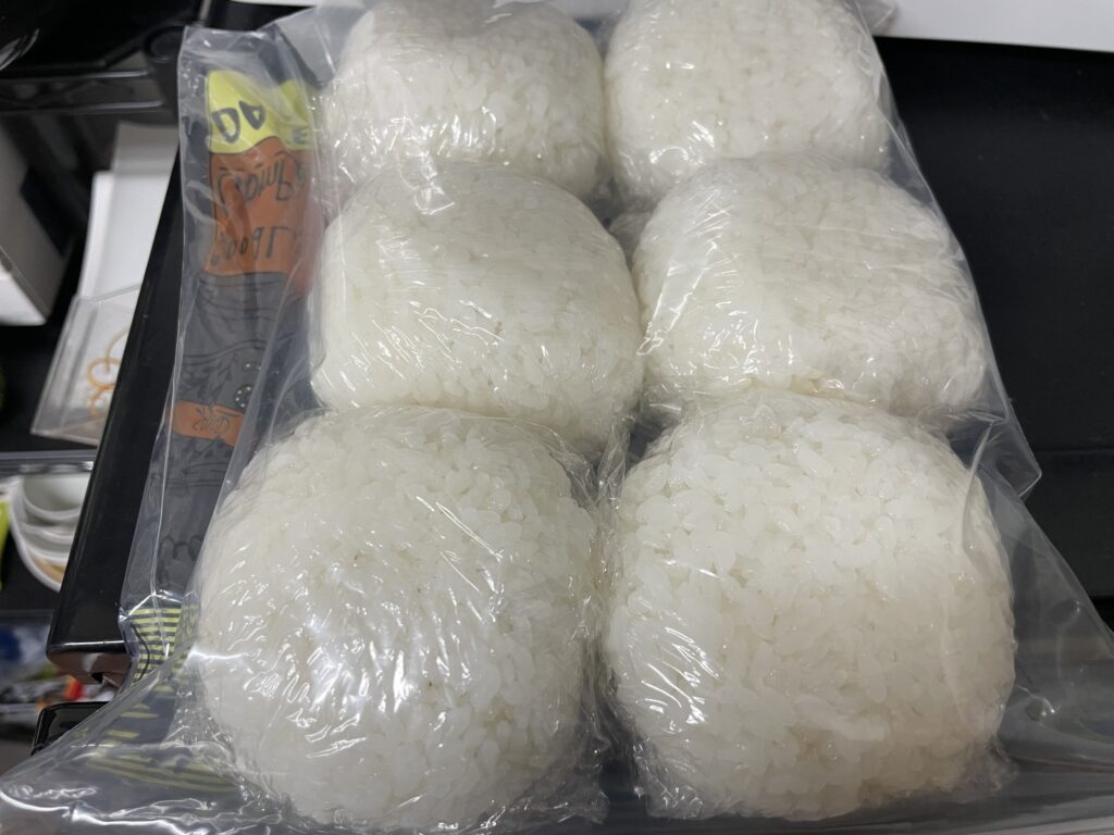 おにぎりは3合ちょっと炊くと1週間分作れるので、まとめて作ってラップしてジップロックに入れて冷凍庫へしまう。朝にチンして具を入れて海苔を巻くだけならすぐ出来るので時短になります。