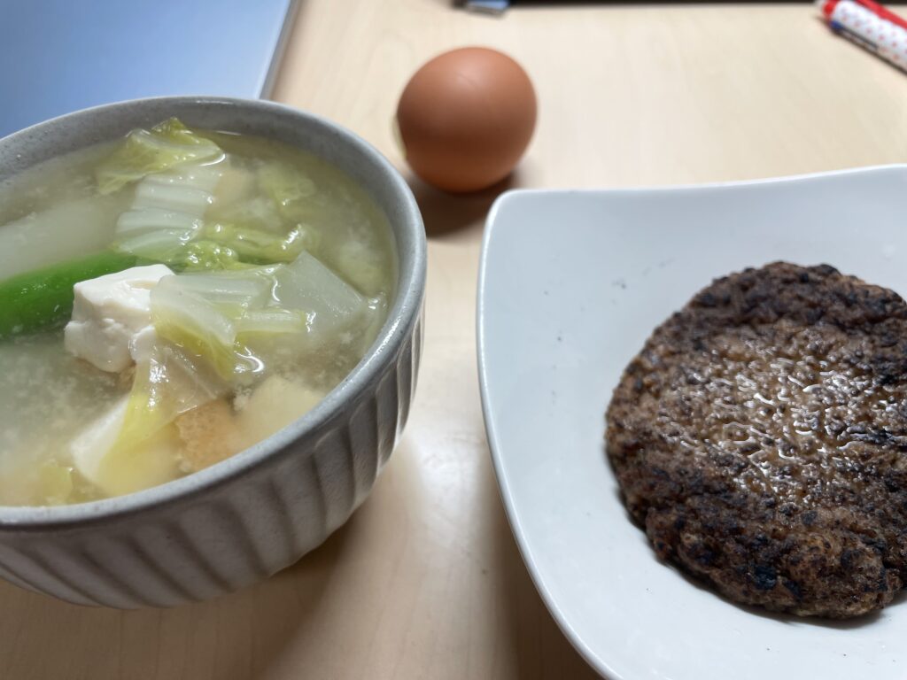 この食事は、タンパク質を多めにしつつ、食物繊維の多い野菜やめかぶを入れ、血糖値が急上昇しにくい内容にしていたため、食欲を抑えやすかったです。